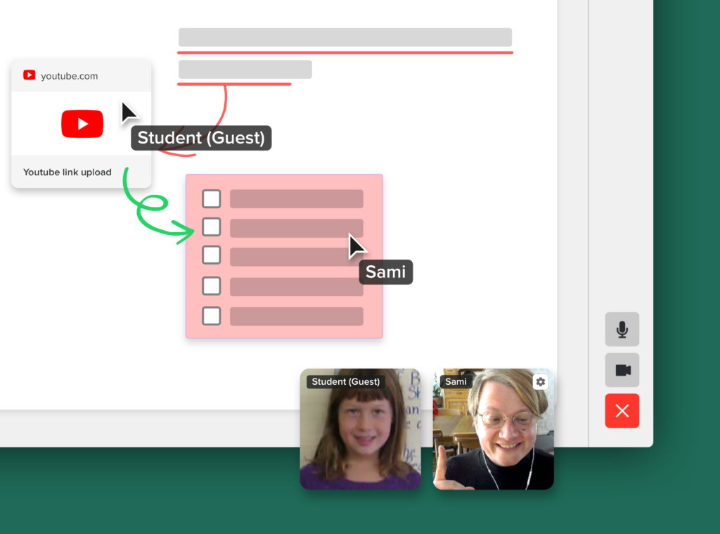 授業が始まると、Sami氏はキャンバスのURLをシェアし、生徒たちがクリックすると参加できます。生徒たちはAlloにサインアップする必要はなく、ゲストとしてキャンバス上でSami氏と簡単に対話することができます。Sami氏と生徒たちは、キャンバス上のビデオ通話機能を使い、またカーソル追跡機能により、生徒がレッスンのスピードにフォローしているかも簡単に把握できます。